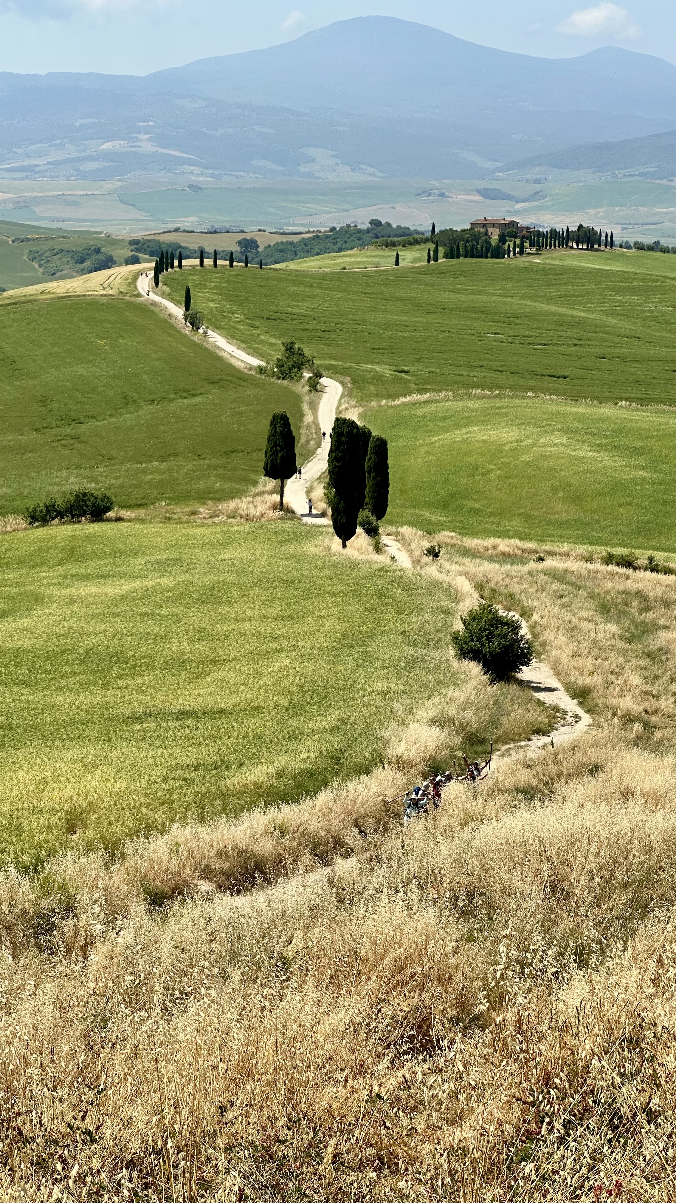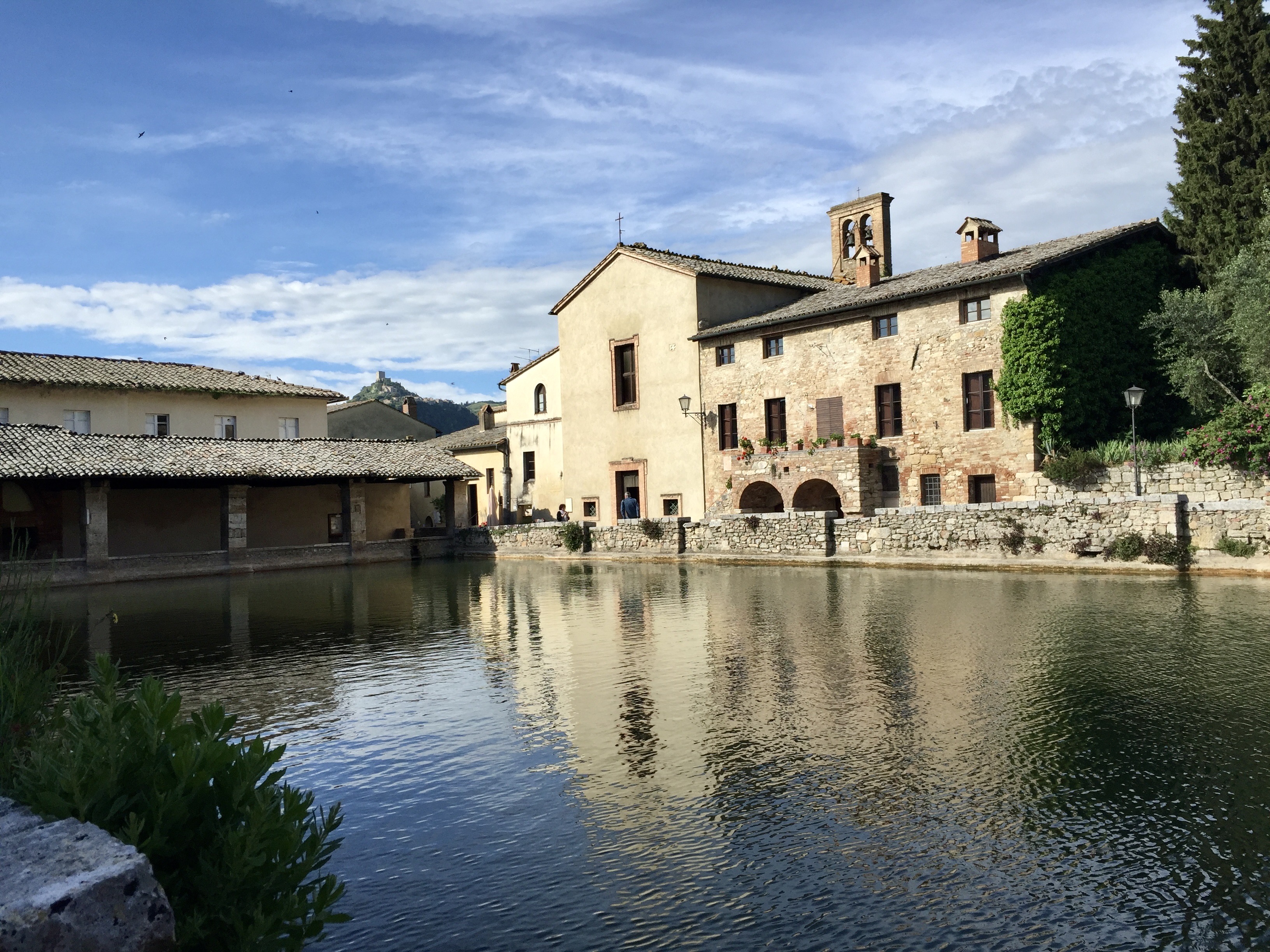 A shorter, scenic day. Walk the classic lane to Bagno Vignoni, where hot springs steam beside stone buildings. Enjoy a long lunch or foot soak, then continue gentle countryside paths to Gallina. Rest early—the Radicofani climb comes tomorrow.